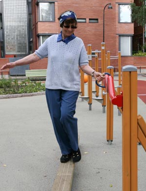 在芬蘭首都赫爾辛基的一個老年人活動公園,一位老年婦女在獨木上鍛煉。老人活動公園為住在附近的老人提供了一個健身和聚會的場所。新華社記者 趙長春/攝 |