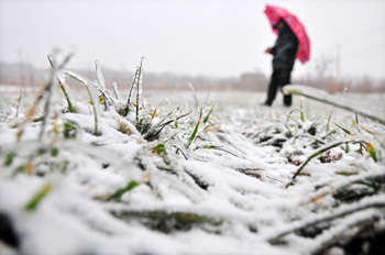 從2月25日夜間開(kāi)始,山東自西向東喜迎降水,截至27日上午10時(shí),山東平均降水量超過(guò)13毫米。這次降水基本都落在了最干旱的魯西南地區(qū),將在很大程度上緩解當(dāng)?shù)睾登。這是2月27日在山東省青州市拍攝的被積雪覆蓋的冬小麥。新華社發(fā)(王繼林
