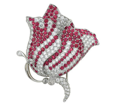 Arpels)追蹤蝴蝶優(yōu)美的身影,并由珠寶工匠以細(xì)致的構(gòu)圖,透過微妙的漸變色寶石,捕捉Vanessa、Brocatelled"or、Bloomfidia和Aliris四種蝴蝶的神態(tài)。以白金、鉆石、綠松石、黑色尖晶石及橘色榴石雕琢的翅翼,令作品更璀璨脫俗。