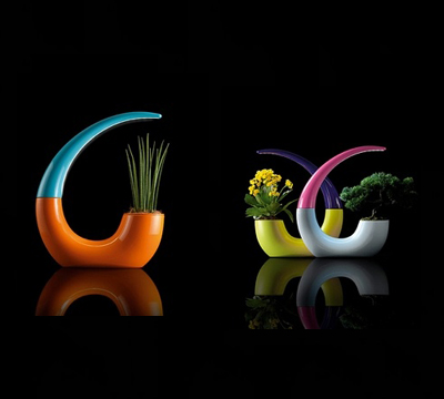 的這盞桌面燈具。號(hào)角形狀這盞臺(tái)燈設(shè)計(jì),除了必須具有的照明功能之外,它還是一個(gè)可以用于種植盆栽的花盆。這兩者的結(jié)合,看上去似乎還蠻和諧的。