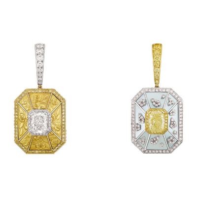 d’Automne”中白色和黃色的鉆石交互對(duì)比映襯,描繪著秋日金陽(yáng)的燦爛光彩。