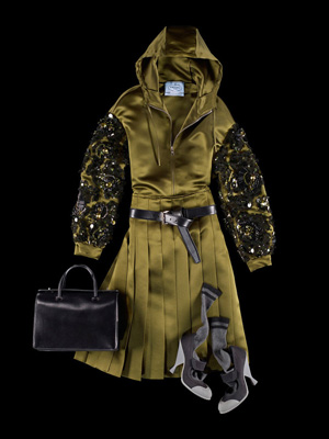 Prada推出聯(lián)名系列,這得讓多少粉絲的小心臟砰砰亂跳。〈讼盗泄灿12個(gè)單品,包含皮革連身裙,繡有黑色精致串珠及亮片的大衣,以及帶有運(yùn)動(dòng)風(fēng)的Prada