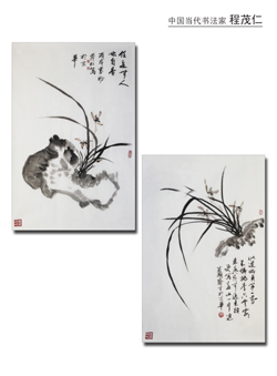 老四程茂仁,1947年生于北京,自幼受家庭的熏陶,隨父習(xí)畫(huà)。后又受教于著名書(shū)法家黃高漢先生,臨習(xí)《柳公權(quán)玄秘塔》、《顏真卿多寶塔》等碑帖,并得其父好友蕭勞、王遐舉先生的教誨,走上了學(xué)習(xí)書(shū)法之路。為了更好地學(xué)習(xí)和交流書(shū)法藝術(shù),1998年退休后,他從山東回到北京,專(zhuān)心致志搞書(shū)法;氐奖本┖,他遍訪(fǎng)北京書(shū)法名家,虛心求教,廣泛交流,受益頗多。2002年,又拜歐陽(yáng)中石先生為師,得到先生的親自教誨,更使其書(shū)法平添了幾多神韻。