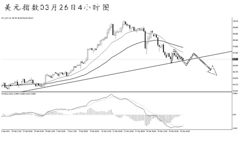 美元指數(shù)持續(xù)下行挑戰(zhàn)趨勢線支撐。從日線圖上看,價格自高位回落,但上升趨勢線和均線系統(tǒng)的依托作用完好,美元指數(shù)整體的漲勢仍在延續(xù)。4小時圖MACD顯示空頭動能仍然略占優(yōu)勢,在跌破趨勢線之前,下跌空間相對有限。短線的下行力度有所減弱,美元指數(shù)面臨一定的反彈需求,但最終選擇向下突破繼續(xù)下調(diào)的概率偏大。