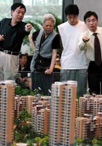 幾位貴陽市民在觀看樓盤模型。新華社記者:楊俊江