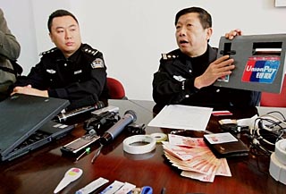 安裝由MP4改裝的攝像探頭竊取銀行卡的卡號(hào)和密碼后,犯罪嫌疑人王某伙同湯某某偽造銀行卡竊取儲(chǔ)戶(hù)銀行卡內(nèi)存款21.6萬(wàn)元。25日,經(jīng)過(guò)近10個(gè)月的縝密偵察,福州市公安局經(jīng)偵支隊(duì)破獲這起特大偽造銀行卡詐騙案。 去年5月,福州警方接到某銀行報(bào)案,有一客戶(hù)反映稱(chēng)手中的銀行卡未丟失,但卡中的的21.6萬(wàn)現(xiàn)金在異地被取走。接到報(bào)案后,民警成立專(zhuān)案組,循線(xiàn)追查,終于鎖定兩名犯罪嫌疑人并展開(kāi)抓捕。今年3月17日,在南京警方的協(xié)助下將犯罪嫌疑人王某抓獲歸案,繳獲作案用電腦一臺(tái)、MP4改裝的攝像探頭一套、仿真銀行面版讀卡器一套、門(mén)禁一套、現(xiàn)金1000余元等贓款贓物。 經(jīng)查,犯罪嫌疑人王某伙同湯某某于去年4、5月間兩次流竄至福州,選擇人員比較密集的二十四小時(shí)自助銀行作為作案地點(diǎn),安裝讀卡器和自制的由MP4改裝的攝像探頭,當(dāng)客戶(hù)刷卡時(shí),就被攝像探頭竊取密碼。犯罪嫌疑人根據(jù)竊取去的卡號(hào)和密碼,通過(guò)電腦、寫(xiě)卡器等工具偽造出儲(chǔ)戶(hù)銀行卡提現(xiàn)或轉(zhuǎn)賬,竊取個(gè)人現(xiàn)金。目前,犯罪嫌疑人王某已被刑事拘留,另一名犯罪嫌疑人湯某某警方正在追捕,案件還在進(jìn)一步審理中。