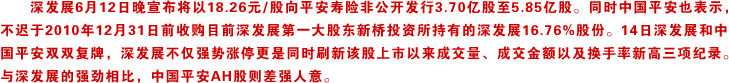 |   中國平安:深發(fā)展以及平安銀行均繼續(xù)獨立經(jīng)營