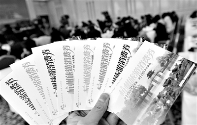今年2月,在“杭州旅游消費(fèi)券”新聞發(fā)布會(huì)上,工作人員正在展示杭州旅游消費(fèi)券。杭州是國內(nèi)首個(gè)推出旅游消費(fèi)券的城市。 |