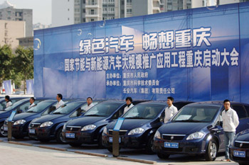 2008年11月27日,重慶市政府向長安汽車集團(tuán)采購的首批混合動(dòng)力政府公務(wù)用車正式交付使用。新華社記者 劉潺
