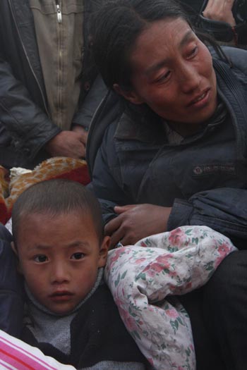 新華社記者在災(zāi)區(qū)現(xiàn)場遇到了幾位來自四川甘孜藏族自治州的藏族同胞,他們是自發(fā)趕來的。42歲的根桑曲扎告訴記者:“我們幾位朋友是到成都辦事的,聽說玉樹發(fā)生地震了,心里很想去幫忙,但一是路途太遠(yuǎn)趕不及,二是也聽說了當(dāng)?shù)卣粲踔驹刚卟灰つ壳巴鶠?zāi)區(qū),我們也怕給當(dāng)?shù)靥砺闊B犝f這里要接收傷員,我們就過來幫忙了。” 4月15日17時(shí)54分,第一批16名傷員順利抵達(dá)華西醫(yī)院。新華社記者在現(xiàn)場看到,這批傷員大多數(shù)均為藏族,傷情較為嚴(yán)重,每人手背上都貼上了紅色標(biāo)簽,標(biāo)明了姓名、性別、年齡和基本傷情。 39歲的藏族傷員擁措地震時(shí)被埋在了廢墟下,造成左臂骨折,幸虧她的親戚在半個(gè)小時(shí)后將她挖了出來。擁措的眼里含滿了劫后余生的淚水,喃喃地說:“全身都痛!痹谝晃徊刈逯驹刚叩姆g下,一名醫(yī)生和護(hù)士對她進(jìn)行了詳細(xì)的傷情、病史了解記錄。 青海玉樹發(fā)生7.1級地震后,相鄰的甘肅省立即行動,組織了甘肅省應(yīng)急救援總隊(duì)前往救援,第一批隊(duì)伍在4月14日中午2時(shí)30分就已經(jīng)出發(fā)趕赴災(zāi)區(qū)。新華社記者14日晚7時(shí)許趕上了第二批救援人員的車輛。從蘭州前往玉樹有1000多公里,甘肅救援總隊(duì)準(zhǔn)備徹夜趕路,車上人員一夜未睡,司機(jī)輪班開車,隊(duì)員吃喝都在車上。 沿途,拉運(yùn)全國各地的救援人員和救災(zāi)物資的車輛都在急速向西。一路上,西北原本少有人煙和車輛稀少的公路上變得十分繁忙,各種救災(zāi)車輛首尾相連形成長長的運(yùn)輸長龍,許許多多閃爍的車燈劃寒冷的黑夜。 高原的夜晚十分寒冷,車窗上的水汽都凍成了冰刮也刮不掉。后半夜救援隊(duì)員不得不加穿軍大衣。水和火腿腸凍得冰冷,隊(duì)員們不得不將其放在懷里,捂熱再吃。高原的寒冷和高原反應(yīng)可能成為救援的一大障礙,因?yàn)閭(gè)別隊(duì)員已有高原反應(yīng)。 車隊(duì)進(jìn)入青海,是玉樹地震發(fā)生12小時(shí)之后,但是沿途已能看到一些青海省為抗震救災(zāi)做的安排:救援綠色通道開通了,每到岔路口都有交警在寒夜值守、指路,一些飯館還掛出免費(fèi)提供熱水的牌子。 經(jīng)過約20個(gè)小時(shí)的奔波,新華社記者最終隨甘肅救援人員進(jìn)入玉樹州府所在地結(jié)古鎮(zhèn)。眼前的景象令甘肅救援隊(duì)員心情沉重,大量土木結(jié)構(gòu)的房屋倒塌,一些新建的框架結(jié)構(gòu)的房屋雖然還保持原樣,但房屋也是遍體傷痕,裂痕明顯。 新華社記者看到,人們大量聚集在街頭,在廣場、體育館等開闊地帶,民政帳篷已搭建起來。到達(dá)災(zāi)區(qū)的各地救援人員,工作有序,各地救援人員分成小組,自覺選擇一些坍塌嚴(yán)重、有可能存在幸存者的大片廢墟進(jìn)行救援。 大街上,除了大量救援車輛,一些當(dāng)?shù)鼐用褚苍诠蛡蜍囕v,搬運(yùn)從廢墟中刨出的家當(dāng)。盡管人們臉上充滿了憂傷的表情,但整個(gè)小鎮(zhèn)上秩序井然,人們或守在自家的廢墟前,或引導(dǎo)救援人員尋找幸存者,或者從廢墟中主動撿拾自家的家當(dāng),還有的互相安慰。 |