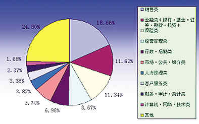 中華英才網(wǎng)“獵頭在線”人力資源專家鄭嘯告訴《市場報》記者,金融行業(yè)目前招聘的職位主要是銷售類、金融類、保險類和經(jīng)營管理類人才。具體從職業(yè)分布情況來看,保險類的供求比例差距比較大,企業(yè)對保險類人才的需求較多,而市場上該類人才的供應(yīng)量相對較少。