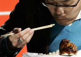 1月10日,一名男子在日本東京的餐廳里拿筷子用餐。日本西部的一個中學(xué)計劃要將筷子的使用技巧納入其入學(xué)考試項目,考試時學(xué)生要用筷子將一個盤子里的珠子、彈球、骰子和豆子在10分鐘內(nèi)轉(zhuǎn)移到另一個盤子里。
