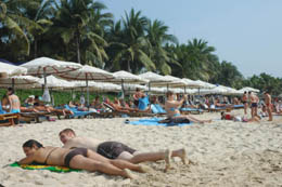 攝) |  三亞市旅游信息中心的抽樣調查顯示,元旦期間,三亞飯店平均開房率為93.15%。其中,五星級為96.27%,四星級為95.34%,三星及三星以下為87.83%,家庭旅館平均開房率為87.76%。