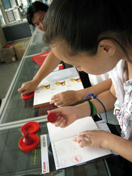 8月27日,北京奧運(yùn)會(huì)閉幕三天后,幾位顧客正在郵局忙著補(bǔ)蓋各種有關(guān)北京奧運(yùn)會(huì)的紀(jì)念郵戳和紀(jì)念章印,以收藏珍貴的奧運(yùn)記憶。