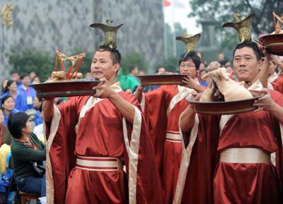 11月7日,釀酒師們依照風(fēng)俗奉獻(xiàn)祭品。 當(dāng)日是農(nóng)歷立冬節(jié)氣,自古以來就是紹興黃酒開始投料發(fā)酵的日子,而釀酒師為了釀造出美酒,就有祭拜“酒神”的傳統(tǒng)。新華社記者:徐昱