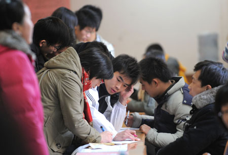 1月14日,寒假留校學(xué)生在應(yīng)聘勤工助學(xué)崗位。當(dāng)日,浙江工業(yè)大學(xué)舉行寒假勤工助學(xué)專場(chǎng)招聘會(huì),10多家企業(yè)提供近200個(gè)短期工作崗位,幫助寒假留校學(xué)生減輕經(jīng)濟(jì)壓力并獲得社會(huì)實(shí)踐機(jī)會(huì),度過充實(shí)的寒假。