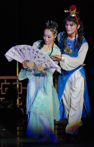 2月23日,演員表演大型原創(chuàng)舞劇《紅樓夢(mèng)》。 當(dāng)晚,北京軍區(qū)政治部戰(zhàn)友文工團(tuán)在廣東汕頭林百欣國際會(huì)展中心上演大型原創(chuàng)舞劇《紅樓夢(mèng)》。