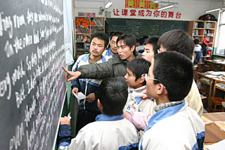 濟(jì)南市歷城區(qū)洪樓高中131課堂教改。 | 是要一張好看的考試成績(jī)單?還是要學(xué)生的全面發(fā)展? 從事教育管理工作27年的山東省棗莊市教育局局長(zhǎng)張磊,有時(shí)不得不違心地選擇前者。“很多東西不能這樣做,但是不得不這樣做,家長(zhǎng)要質(zhì)量、要升學(xué)率。在這種現(xiàn)實(shí)情況下,很多做法越來(lái)越絕,有的地區(qū)甚至提出‘哪怕有一口氣,能爬進(jìn)考場(chǎng)就行’這樣的口號(hào)。這對(duì)學(xué)生身心是極大的摧殘!睆埨谡f(shuō)。 一個(gè)人無(wú)法改變大環(huán)境,但如今,張磊明顯感覺到了大環(huán)境的改變給他帶來(lái)的一份輕松。他說(shuō):“山東省統(tǒng)一規(guī)范辦學(xué)行為,可以真正使教育返璞歸真了。” 山東通過對(duì)中小學(xué)辦學(xué)行為進(jìn)行嚴(yán)格規(guī)范,改革對(duì)學(xué)校、教師的評(píng)價(jià)方法,比較有效地解決了各地惡性競(jìng)爭(zhēng)、片面追求升學(xué)率等問題,并且開始觸及廣泛存在于地方政府、教育行政部門和中小學(xué)校的以分?jǐn)?shù)論英雄、以升學(xué)率定優(yōu)劣的扭曲的教育政績(jī)觀。