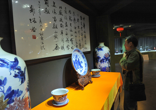 圖為一名參觀者在景德鎮(zhèn)十大瓷廠博物館參觀。 |