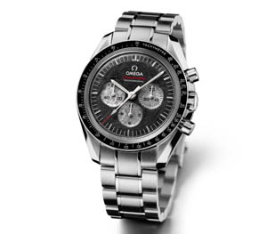1975年7月17日,當(dāng)美國宇航員陸軍中將托馬斯·斯塔福德和前蘇聯(lián)宇航員陸軍中將阿列克謝·列昂諾夫在連接各自太空飛船的對接艙口握手時,這兩位太空先驅(qū)與他們的宇航員同伴均佩戴有歐米茄超霸專業(yè)計(jì)時表。為紀(jì)念這一歷史性握手35周年,歐米茄特別推出超霸專業(yè)月球表阿波羅—聯(lián)盟號“35周年紀(jì)念版”計(jì)時表,限量1975枚。該款腕表表盤由進(jìn)入地球大氣層、高速撞擊陸地表面后殘存的隕石制作而成,隕石表盤的黑色是表面氧化作用的結(jié)果,銀色秒針和計(jì)時器小表盤均展現(xiàn)出隕石的自然色澤。 |