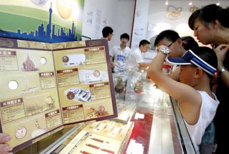 暑期大客流參觀世博會,帶動了世博特許商品新一輪的銷售高潮。其中,匯聚了100多個參展國家和地區(qū)的流通硬幣和紙幣的——《中國2010年上海世博會世界錢幣博覽裝幀冊》成為熱銷品種。游客們在參觀世博場館后,收藏世界各地的錢幣成為世博記憶的一部分。