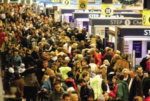 12月21日,大量旅客滯留在希斯羅機場。由于倫敦遭遇大霧,英國航空公司已取消了從該機場起飛的約180個航班。CFP供圖 |