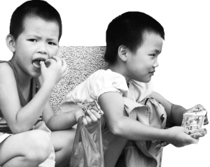 “魷魚絲”、“辣骨頭”、“小香腸”、“香菇牛肉”、“喜樂棒”,這類包裝簡單、生產(chǎn)日期不清,廠家名稱模糊的小零食進(jìn)不了大超市,卻成了小學(xué)校周邊雜貨店的暢銷貨。幾天來,《市場(chǎng)報(bào)》記者對(duì)北京部分小學(xué)校園周邊的雜貨店進(jìn)行了暗訪。 6月1日上午9點(diǎn),記者來到位于海淀區(qū)的萬泉河小學(xué),看到在萬泉河小學(xué)的周邊布滿了賣各種食品的小吃店及雜貨店。記者走進(jìn)位于學(xué)校西側(cè)的一家雜貨店看到,各種小包裝的休閑食品及廉價(jià)玩具有20多種。為了弄清這些小食品的生產(chǎn)廠家及是否是偽劣的問題食品,記者隨意買了10種價(jià)格在0.1元至0.5元不等的袋裝小食品及玩具。 “魷魚絲”、“辣骨頭”、“小香腸”、“香菇牛肉”、“喜樂棒”、“牛奶糖”、“冰葡萄棒”、“干爹”、“干媽”、“香辣薯片”及玩具“眼球”(上面只有英文,沒有廠家名稱)。記者看到這些袋裝的食品包裝簡易,有的塑料袋密封不嚴(yán),有的沒有廠家名稱,生產(chǎn)日期模糊不清。打開塑料包裝袋,里面裝的都是色素和香精很重的膨化食品及不知用什么油烹制的顏色發(fā)黑的豆制品。 下午2點(diǎn)多鐘,記者又來到位于朝陽區(qū)的酒仙橋中心小學(xué)。在校門口南側(cè)有一家賣鮮花禮品的小店,記者看到類似的小食品占據(jù)了鮮花禮品店的一個(gè)柜臺(tái),這些小食品的包裝及產(chǎn)地是某某縣的小廠家,價(jià)格均0.5元一袋。當(dāng)記者問售貨小姐銷售情況時(shí),這位小姐回答道,“挨著學(xué)校,什么賣不出去呀。特別是這些袋裝小食品賣得特別好!