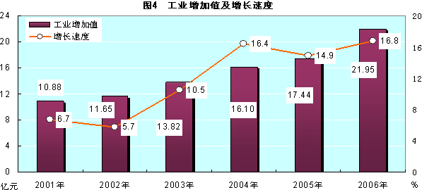 年末牲畜存欄總數(shù)為2436萬(wàn)頭只,比上年末增加21萬(wàn)頭只。其中:牛651萬(wàn)頭,增加19萬(wàn)頭;羊1703萬(wàn)只,增加5萬(wàn)只。全年豬牛羊肉產(chǎn)量達(dá)22.21萬(wàn)噸,比上年增長(zhǎng)3.5%;奶類產(chǎn)量27.61萬(wàn)噸,增長(zhǎng)2.3%。 三、工業(yè)和建筑業(yè)   全年工業(yè)企業(yè)實(shí)現(xiàn)增加值21.65億元,比上年增長(zhǎng)16.8%,其中鄉(xiāng)及鄉(xiāng)以上工業(yè)企業(yè)實(shí)現(xiàn)增加值20.95億元,增長(zhǎng)19.8%。全區(qū)鄉(xiāng)及鄉(xiāng)以上工業(yè)企業(yè)實(shí)現(xiàn)產(chǎn)值37.40億元,比上年增長(zhǎng)20.9%。其中:輕工業(yè)實(shí)現(xiàn)產(chǎn)值13.61億元,增長(zhǎng)0.6%;重工業(yè)實(shí)現(xiàn)產(chǎn)值23.79億元,增長(zhǎng)37.1%。國(guó)有及國(guó)有控股企業(yè)全年實(shí)現(xiàn)產(chǎn)值21.80億元,比上年增長(zhǎng)9.4%。按登記注冊(cè)類型分,國(guó)有企業(yè)實(shí)現(xiàn)產(chǎn)值13.57億元,增長(zhǎng)10.5%;集體企業(yè)實(shí)現(xiàn)產(chǎn)值5.37億元,增長(zhǎng)15.4%;股份制企業(yè)實(shí)現(xiàn)產(chǎn)值13.56億元,增長(zhǎng)38.7%;股份合作企業(yè)實(shí)現(xiàn)產(chǎn)值0.99億元,增長(zhǎng)18.7%;外商及港澳臺(tái)企業(yè)實(shí)現(xiàn)產(chǎn)值2.51億元,增長(zhǎng)13.3%;其他經(jīng)濟(jì)類型企業(yè)實(shí)現(xiàn)產(chǎn)值1.41億元,增長(zhǎng)4.6%。鄉(xiāng)及鄉(xiāng)以上工業(yè)企業(yè)產(chǎn)品銷售率92.0%。