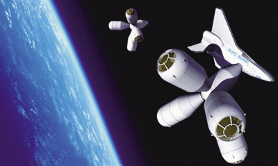 美國www.space.com網(wǎng)站近日報道,世界上第一個太空旅館有望在2012年建成。屆時,太空迷們可以花400萬美元在這里住3天。這是“銀河套房酒店”的效果圖。