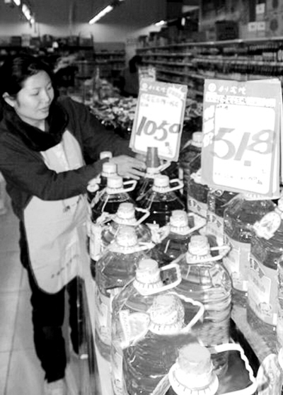 12月8日,家樂福北京方圓店。 已經(jīng)大半年沒有買過食用油的陳先生一次性購買了兩桶5.4升裝魯花1級壓榨花生油。當(dāng)時,該花生油售價為105.9元。而在數(shù)周前,這個價格還是99.9元!皟r格還會漲的。”家樂福油類貨架的促銷員說。 花生油僅僅是個縮影。據(jù)國家有關(guān)部門價格監(jiān)測顯示,在11月份的上半月內(nèi),國內(nèi)市場食用油價格呈現(xiàn)全面上漲之勢。其中,全國花生油平均零售價格為每升