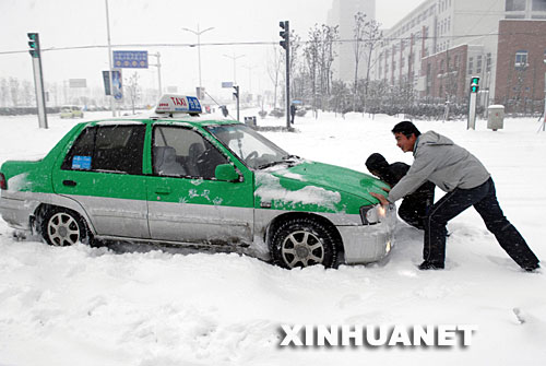 1月26日,一輛出租車陷在雪中。當(dāng)日,合肥出現(xiàn)罕見暴雪,給市民出行帶來較大影響。合肥市氣象臺發(fā)布了道路結(jié)冰黃色預(yù)警和暴雪橙色預(yù)警。 新華社發(fā)(馬啟兵 攝)