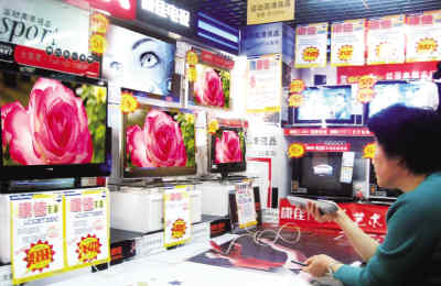 英寸的液晶電視。“現(xiàn)在賣場里已經(jīng)是平板電視的天下了,