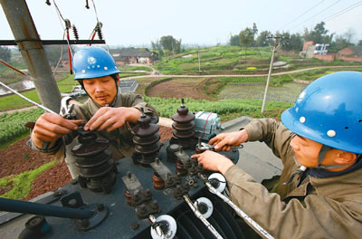 重慶市永川區(qū)供電分局雙竹供電所從3月起組成3支檢修小分隊(duì),陸續(xù)對(duì)轄區(qū)內(nèi)的24臺(tái)變壓器進(jìn)行預(yù)防性檢修,以增強(qiáng)供電運(yùn)行的可靠性,確保農(nóng)民春耕用電所需。圖為3月19日,電力職工在認(rèn)真檢修變壓器。