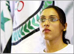 |  |  伊拉克女子短跑運動員達納·阿卜杜勒-拉扎克日前獲得奧運“外卡”,提前“出線”,有望成為參加北京奧運會的惟一一名伊拉克女將。 躲過狙擊手射殺、克服國內(nèi)惡劣訓練條件、頂住傳統(tǒng)思想壓力,阿卜杜勒-拉扎克的奧運征途走得坎坷卻堅定。作為國內(nèi)短跑紀錄保持者,這名21歲的女將正熱切盼望著奧運起跑槍響。
