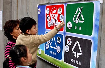 日前,上海開始在居民區(qū)推行新的生活垃圾分類管理辦法,紅、綠、藍(lán)、黑四色嶄新的垃圾桶出現(xiàn)在居民區(qū)中,引導(dǎo)居民主動(dòng)對(duì)垃圾篩選分類,生活垃圾將不再是“放錯(cuò)地方的資源”。 據(jù)上海市容環(huán)衛(wèi)部門介紹,除了大件垃圾和裝修垃圾以外,上海新的垃圾分類方式把居民區(qū)垃圾分為:玻璃、有害垃圾、可回收物、其他垃圾四類,對(duì)應(yīng)的垃圾桶顏色分別為綠色、紅色、藍(lán)色和黑色。 4月19日起,上海在100個(gè)居民小區(qū)率先推行生活垃圾四色新分類模式,下半年四色垃圾桶還將推廣至全上海1000個(gè)封閉式居住區(qū)。 除封閉式居住區(qū)外的其他兩大區(qū)域,將實(shí)施不同的分類方式:年內(nèi),景觀道路、主要旅游景點(diǎn)等公共場(chǎng)所將全面實(shí)施生活垃圾二分類,即分為可回收物、其他垃圾;1000家政府機(jī)關(guān)、學(xué)校、大中型企事業(yè)單位等將實(shí)施生活垃圾三分類,即可回收物、有害垃圾和其他垃圾。上海市容環(huán)衛(wèi)部門負(fù)責(zé)人介紹,上海計(jì)劃五年內(nèi)形成生活垃圾分類收集、分類運(yùn)輸、分類處置全過(guò)程暢通、有序的物流系統(tǒng),實(shí)現(xiàn)全程管理。垃圾分類作為發(fā)展循環(huán)經(jīng)濟(jì)、落實(shí)節(jié)能減排要求的一項(xiàng)重要措施,不僅是對(duì)資源的一種充分利用,更是綠色奧運(yùn)的一種體現(xiàn)。 上海一位市民程阿姨說(shuō):“奧運(yùn)快到了,我們也要從自身做起,要改變以往生活中的不良習(xí)慣,真正讓綠色融入生活中去。”