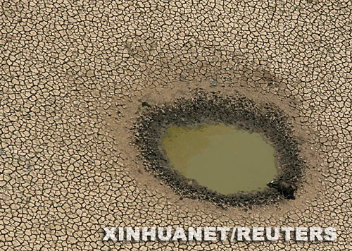2005年10月26日,因巴西亞馬孫河流域遭遇嚴重干旱,一頭牛正在接近干涸的庫魯阿伊湖湖底喝水。 新華社/路透 |