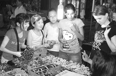 遭受特大洪水“洗禮”的廣西陽朔縣西街,連日來重現(xiàn)游客云集繁華的景象。6月13日,50年一遇的特大洪水使陽朔成了一片澤國(guó),西街成了“水街”,全縣旅游業(yè)受到重創(chuàng)。14日洪水消退后,全縣旅游秩序恢復(fù)正常。圖為中外小朋友在廣西陽朔西街購物。