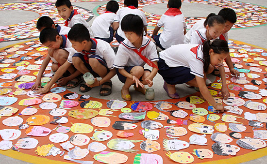 安徽省淮北市黎苑小學(xué)日前開展了最美“笑臉”迎奧運(yùn)活動(dòng),學(xué)生們把自己畫的“笑臉”貼在奧運(yùn)五環(huán)里,由老師和學(xué)生組成的評(píng)委對(duì)作品進(jìn)行投票評(píng)獎(jiǎng)。