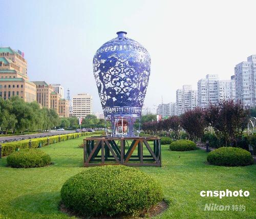 7月20日,一個高4米左右的“青花瓷”瓶奧運(yùn)花壇在北京長安街亮相,其清新典雅的“芳姿”成為一道別致風(fēng)景。