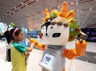 在民航局及機場奧運團隊支持下,由中國民航大學研制的五個奧運福娃機器人,亮相北京首都國際機場T3航站樓。奧運會期間,奧運福娃機器人將守候在北京首都國際機場,迎送到港離港的奧運大家庭成員和國內外賓客。