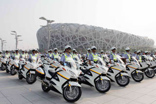 7月20日,北京奧運交通應急小分隊在“鳥巢”前整裝待發(fā)。