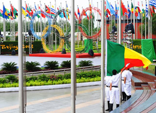 7月29日,貝寧奧運代表團在北京奧運村舉行升旗儀式。