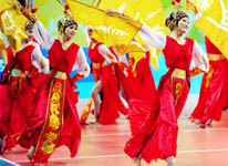 志愿者們表演民族民間舞蹈