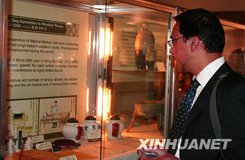 7月28日,在英國倫敦皇家醫(yī)學(xué)會,一名觀眾在英國中醫(yī)藥周活動上參觀中醫(yī)藥實(shí)物展。英國中醫(yī)藥周7月27日在倫敦開幕。在隨后的一周時(shí)間內(nèi),中英醫(yī)學(xué)界人士將探討中醫(yī)藥在英國的發(fā)展前景,特別是確立中醫(yī)藥在英國的合法地位等問題。英國中醫(yī)藥周還將舉辦展覽,幫助觀眾了解中醫(yī)藥的歷史和現(xiàn)狀。 |