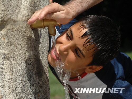 8月4日,在西班牙首都馬德里,一名男孩喝水降溫。近日,伊比利亞半島遭遇熱浪襲擊,部分地區(qū)最高氣溫已突破40攝氏度。西班牙政府已發(fā)出高溫警告,要求居民注意防暑降溫。