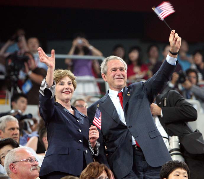 >> 美國(guó)總統(tǒng)布什和夫人在奧運(yùn)會(huì)開(kāi)幕式上