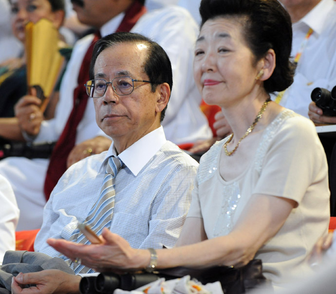 >> 日本首相福田康夫和夫人在奧運會開幕式上