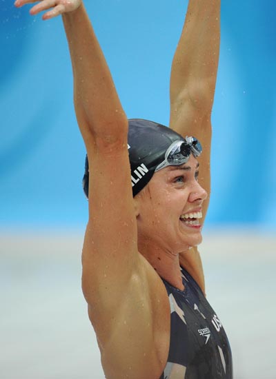 瓊斯奪得女子100米蛙泳冠軍。新華社記者:凡軍