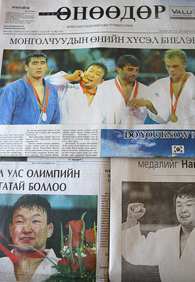 蒙古國(guó)選手奈丹·圖布辛巴亞爾14日在柔道100公斤級(jí)比賽中奪得金牌。這是蒙古國(guó)自1964年參加奧運(yùn)會(huì)以來(lái)獲得的首枚金牌。14日夜至15日晨,蒙古國(guó)近萬(wàn)名群眾在烏蘭巴托市中心廣場(chǎng)歡慶勝利,度過(guò)了不眠之夜。 “我們贏了!”“我們拿到金牌了!”這是市中心廣場(chǎng)上聽到最多的一句話。人們載歌載舞,歡呼聲不斷,更有市民流下激動(dòng)的淚水。 一位名為額爾登的市民表示,這是蒙古國(guó)的大喜事,我們幾個(gè)朋友要備酒慶祝,我們太高興了。 晚9時(shí)左右,蒙古國(guó)總統(tǒng)、總理、議長(zhǎng)一起來(lái)到市中心廣場(chǎng)。“今天晚上是不眠狂歡夜,”總統(tǒng)那木巴爾·恩赫巴亞爾在講話一開始就說(shuō),“蒙古國(guó)出了金牌運(yùn)動(dòng)員,這是我的榮幸,也是人民的榮幸,我們等待這一刻很久了!” 總理桑吉·巴亞爾搶過(guò)麥克風(fēng),高呼“蒙古國(guó)萬(wàn)歲”,聲音因激動(dòng)有些沙啞。廣場(chǎng)上響起震耳的歡呼聲。 蒙古國(guó)的這“三巨頭”領(lǐng)唱國(guó)歌,廣場(chǎng)上的氣氛接近沸騰。 當(dāng)天,蒙古國(guó)總統(tǒng)下令授予圖布辛巴亞爾“功勛運(yùn)動(dòng)員”和“勞動(dòng)英雄”稱號(hào)以及象征最高榮譽(yù)的“蘇赫巴托”勛章?偨y(tǒng)、總理和議長(zhǎng)還分別發(fā)出賀電,代表全體人民向圖布辛巴亞爾表示感謝,并希望這枚金牌能帶動(dòng)蒙體育事業(yè)發(fā)展至新的高峰。 據(jù)悉,圖布辛巴亞爾將獲得蒙政府的1.2億圖格里克(約合1萬(wàn)美元)的獎(jiǎng)金。蒙電信公司14日也決定免費(fèi)向圖布辛巴亞爾提供“9999-9999”的電話號(hào)碼。“9”對(duì)蒙古國(guó)人來(lái)說(shuō)是一個(gè)吉祥的數(shù)字。 圖布辛巴亞爾是第一次參加奧運(yùn)會(huì),他2002年開始學(xué)習(xí)柔道,曾獲得亞錦賽亞軍和世界杯季軍。 蒙古國(guó)共獲得了29個(gè)北京奧運(yùn)會(huì)參賽資格。13日,蒙射擊選手貢德格瑪獲得本次奧運(yùn)會(huì)的首枚銀牌。在北京奧運(yùn)會(huì)之前,蒙古國(guó)共獲得了15枚奧運(yùn)獎(jiǎng)牌,但沒(méi)有1枚金牌。