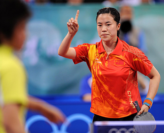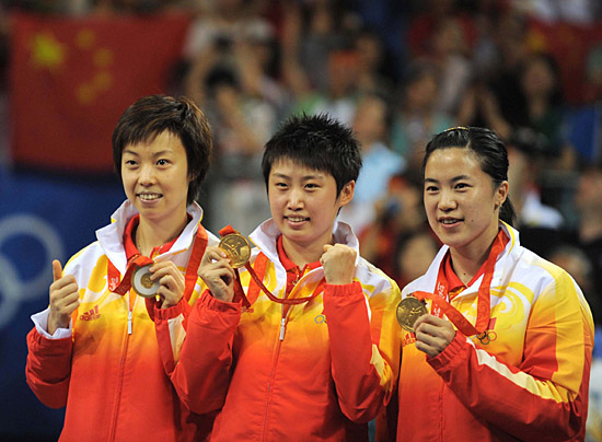 在17日晚舉行的北京奧運會乒乓球女子團體決賽中,中國隊擊敗新加坡隊獲得金牌。 第一盤由中國隊的王楠對陣新加坡隊的馮天薇,王楠在先失一局的情況下連扳三局,以3:1戰(zhàn)勝對手為中國隊拿下第一分。 第二盤比賽中,世界排名第一的張怡寧出場,迎戰(zhàn)世界排名第六的新加坡名將李佳薇。張怡寧延續(xù)了隊友王楠的獲勝軌跡,第一局9:11失利,然后連勝三局,以3:1取得第二盤的勝利。 在第三盤雙打比賽中,由中國隊的張怡寧/郭躍對陣新加坡隊的李佳薇/王越古,張怡寧/郭躍直落三局以3:0取勝。 中國隊最終以總比分3:0戰(zhàn)勝新加坡隊,獲得北京奧運會乒乓球女子團體金牌。